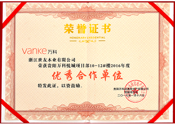 蘇南萬科:2016年度優秀合作單位